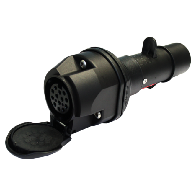 Redukce 15-ti pólové zásuvky 24V (nákladní vozy) na 13-ti pólovou zásuvku 12V (osobní vozy)